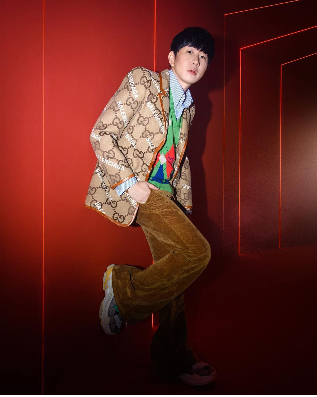 JJ skipped the dad fashion trend and went straight to grandpa style with this clashing Gucci look.
