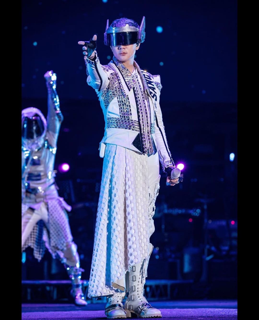 JJ looked like he walked straight out of a sci-fi movie in his futuristic outfit complete with visor and metallic hair.