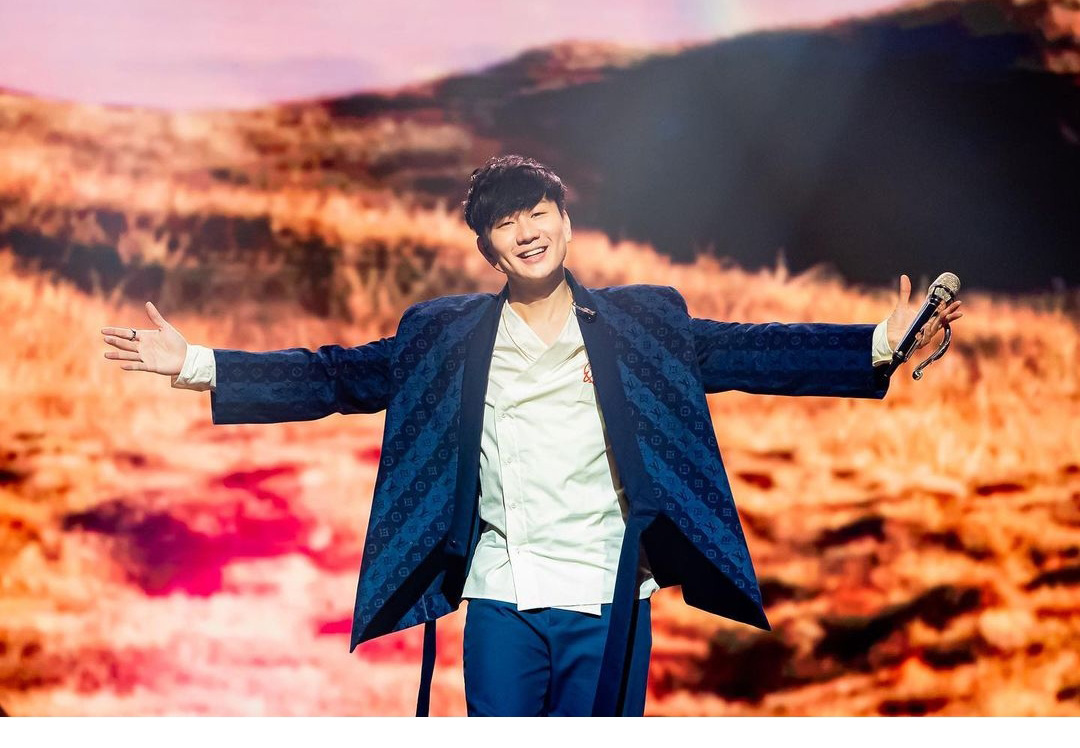 JJ looked as dreamy as the clouds on his Louis Vuitton suit while performing at the Golden Melody Awards.