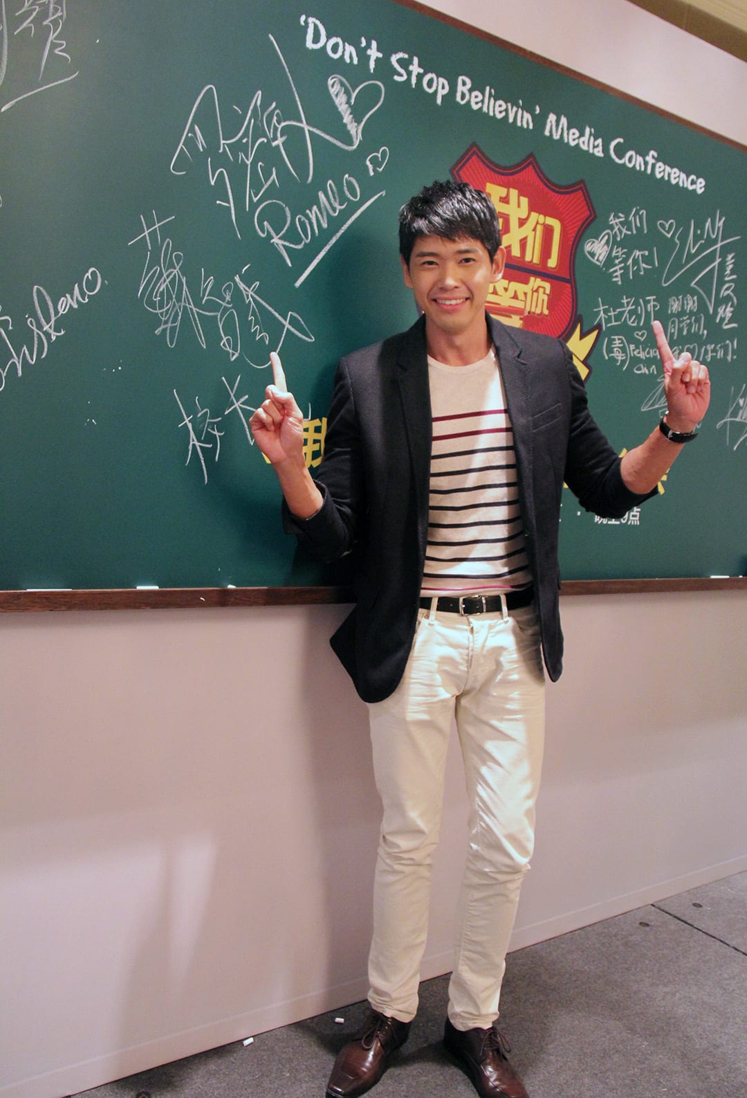 As a lawyer on Sudden, it was only natural for Romeo to attend the press conference cleanly groomed and in a preppy suit.