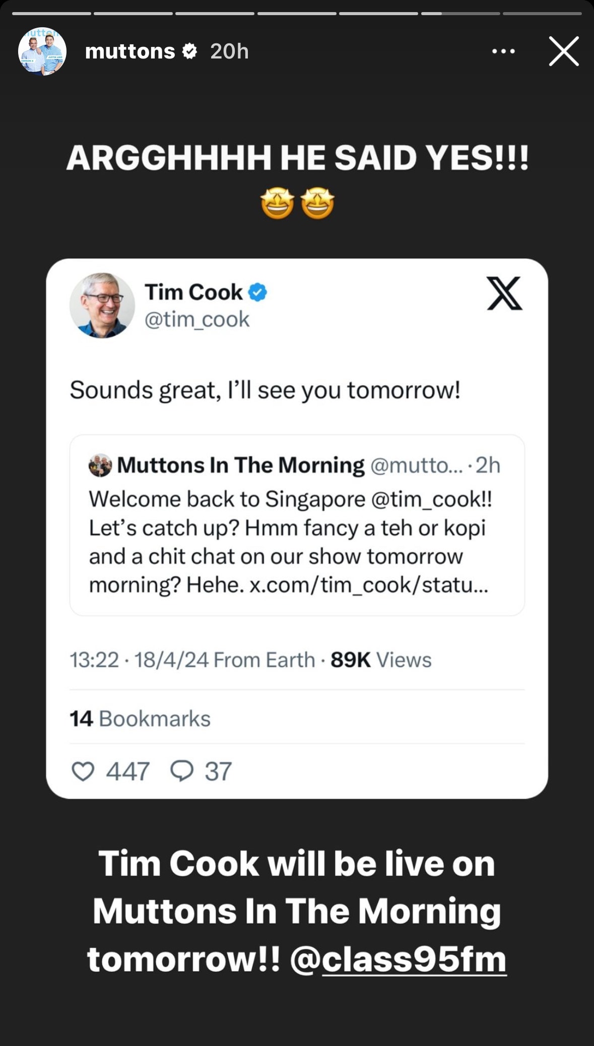 Is Apple CEO Tim Cook Secretly S’porean? He Correctly Guessed Local Food On Class 95’s Muttons In The Morning