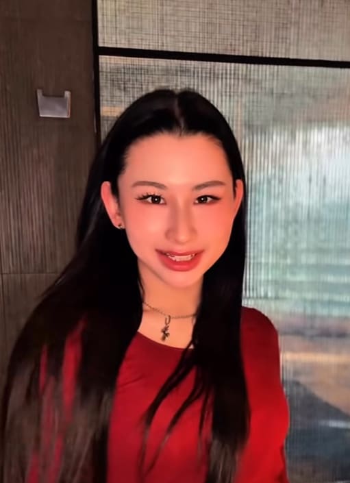 Without the wig and heavy makeup, she is said to look like Hong Kong actress Elaine Yiu.