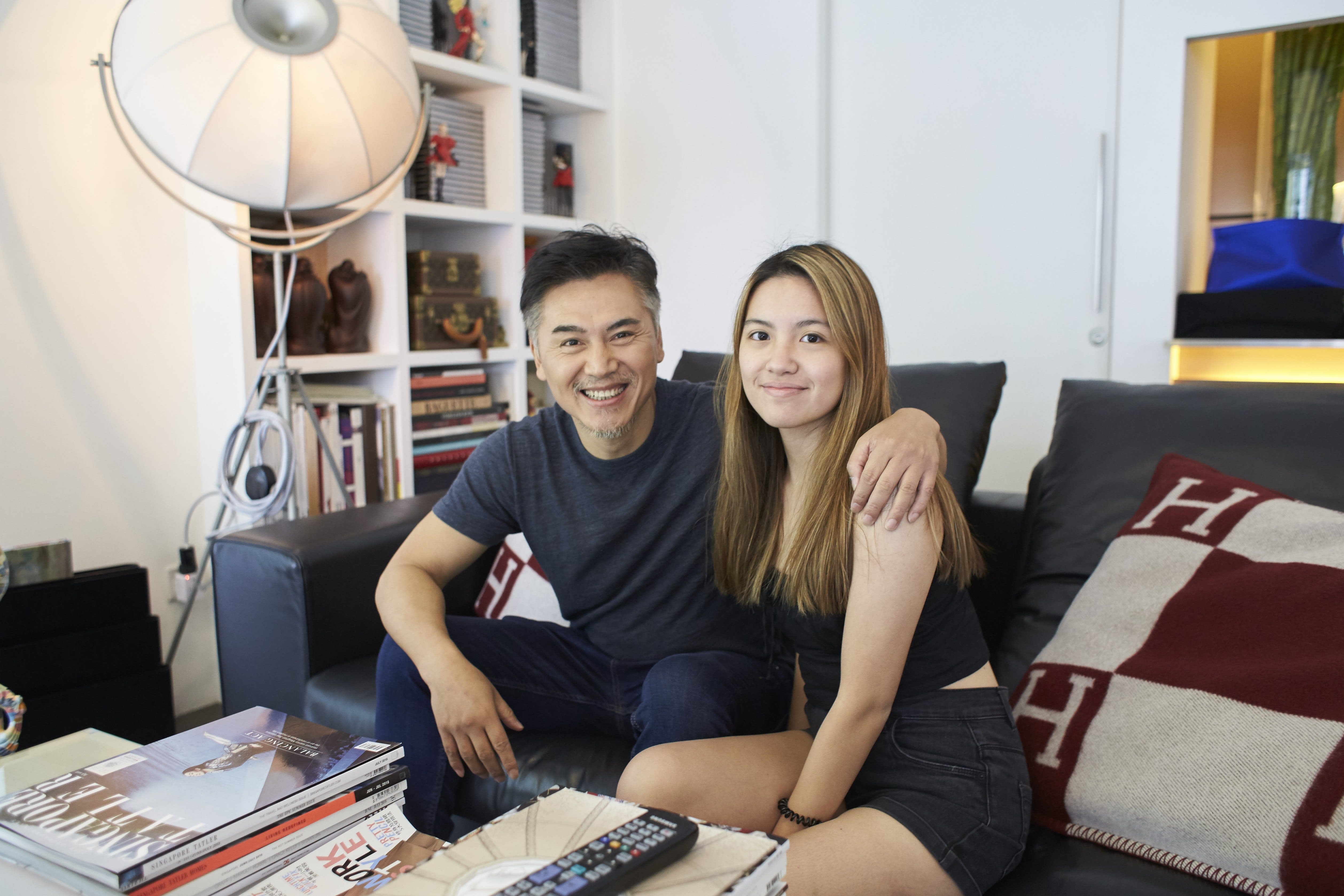 We’re at Passion Hair Salon where we’re meeting the 51-year-old actor who had flown in specially from Melbourne the day before for this interview and shoot. Living in Australia clearly has rubbed off on Shanshan, who now peppers his conversation with English words, like ‘resume’, ‘overcome’ and ‘relax’. Accompanying him at the shoot is his daughter, Emma, who has been in Singapore the past month attending music classes at Lee Wei Song School of Music. The sweet 20-year-old, who is the oldest of Shanshan’s four kids, all of whom are Singaporean like his wife, is currently on her winter break from Swinburne University where she majors in marketing. Both father and daughter are also headed to the airport after our chat. Emma is flying home to Melbourne and Shanshan, for Hangzhou, where he will be filming a movie for two months.