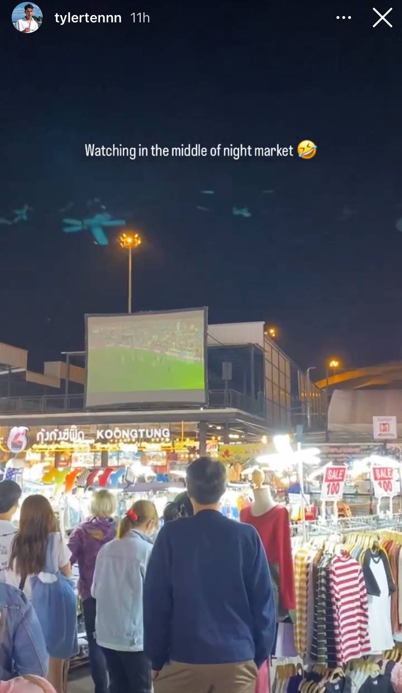 Tyler Ten managed to catch the match at a night market in Thailand. Say whaaat?! Guess he could've even snuck in a bit of shopping or snacking during the half-time breaks.