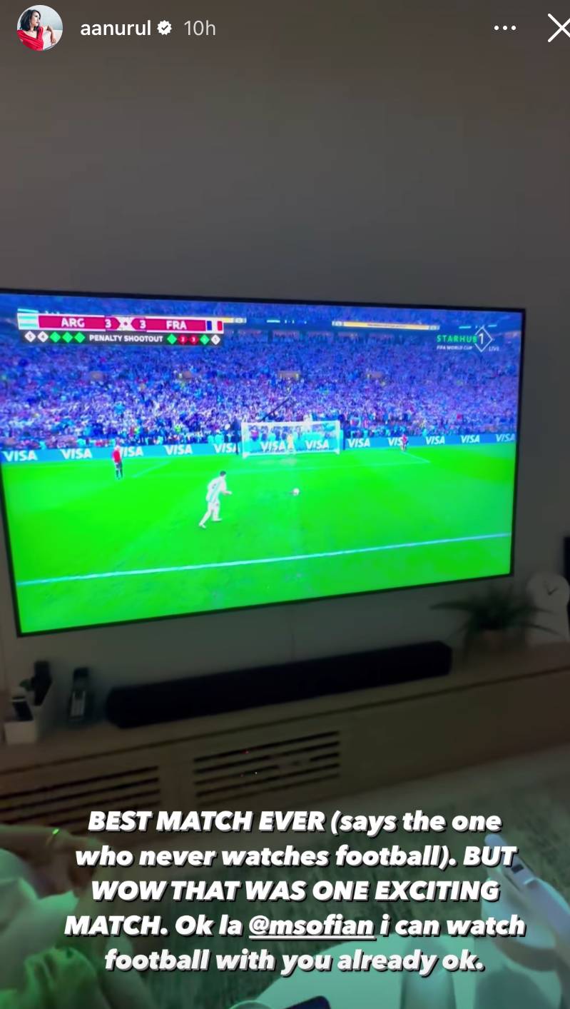 Describing herself as someone who "never watches football", Nurul joked that she'll be able to watch football matches in the future with her husband, after watching the finale. Nice.