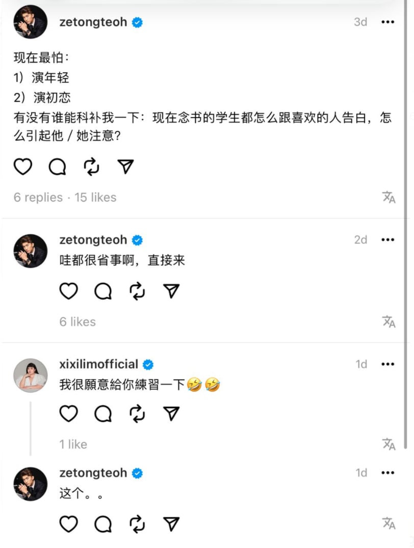 It's why Zetong, who plays a devious and rich playboy in new Mediacorp drama All That Glitters, resorted to asking his followers on Threads how youngsters profess their love to their crushes these days.