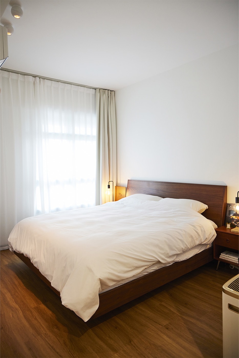 The bedroom is deliberately kept simple so more budget could be allocated to the master bathroom.