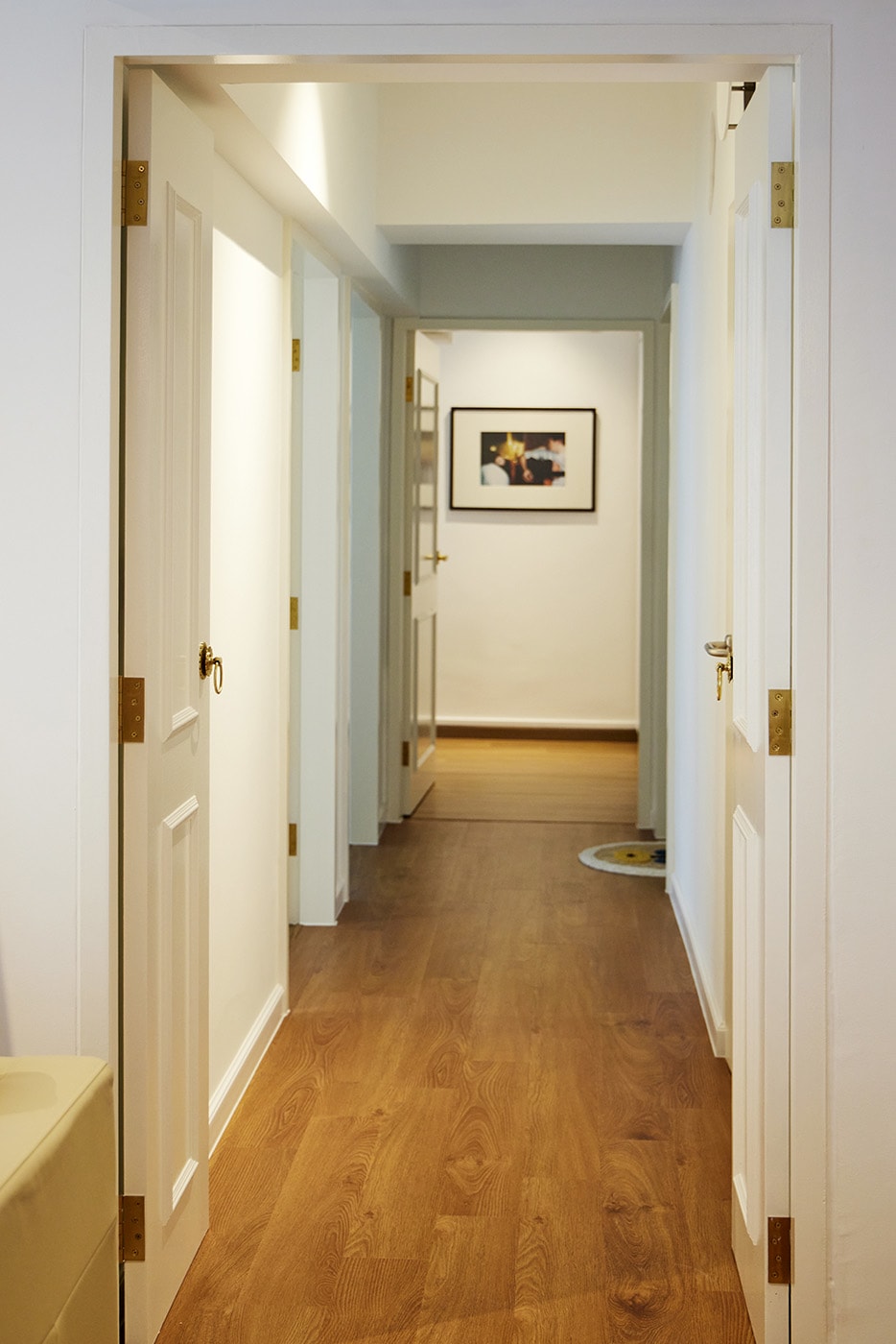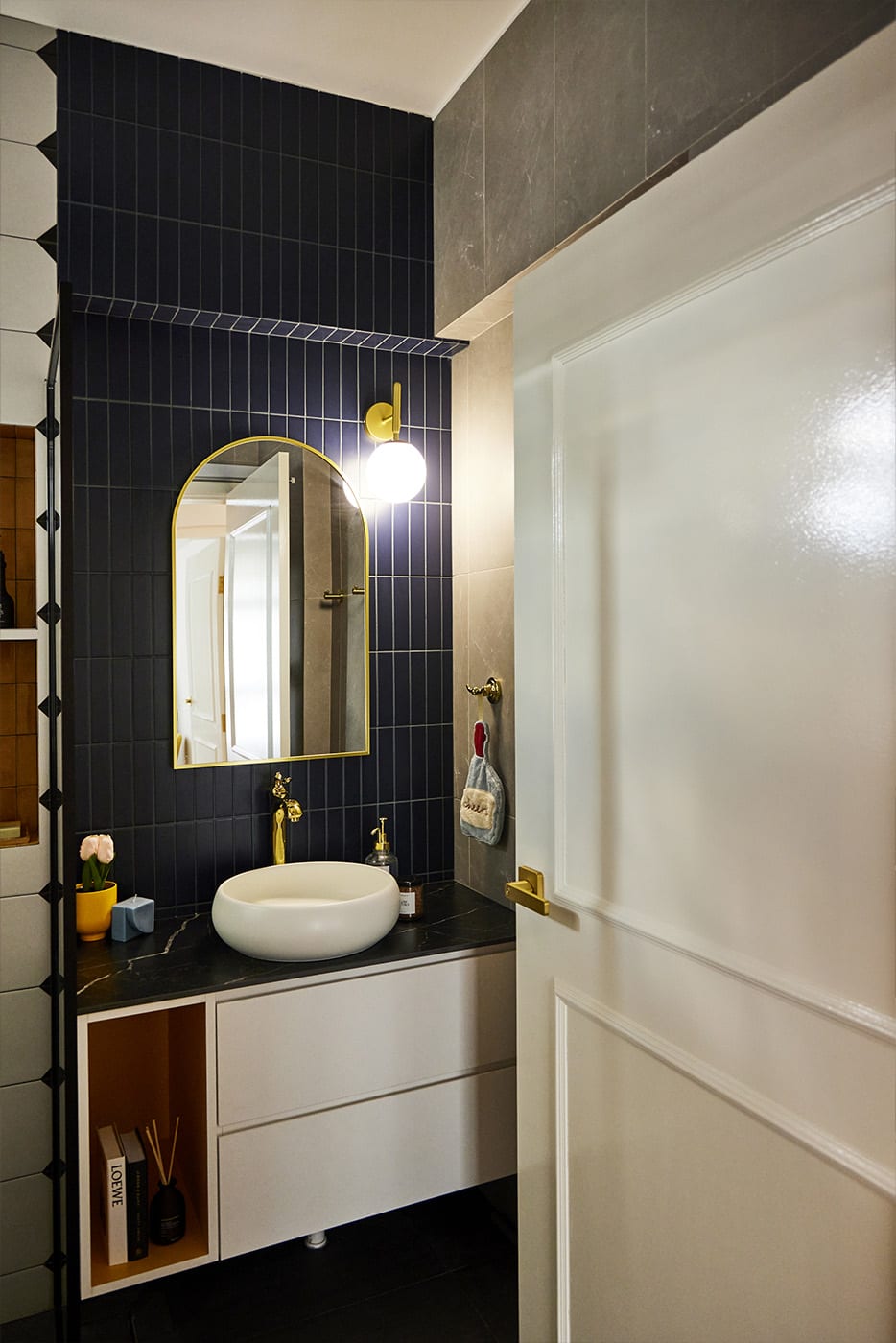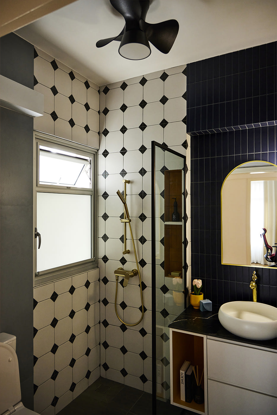 To keep within the reno budget, there was no hacking and the unit's original layout and fittings such as wall tiles and flooring were retained.