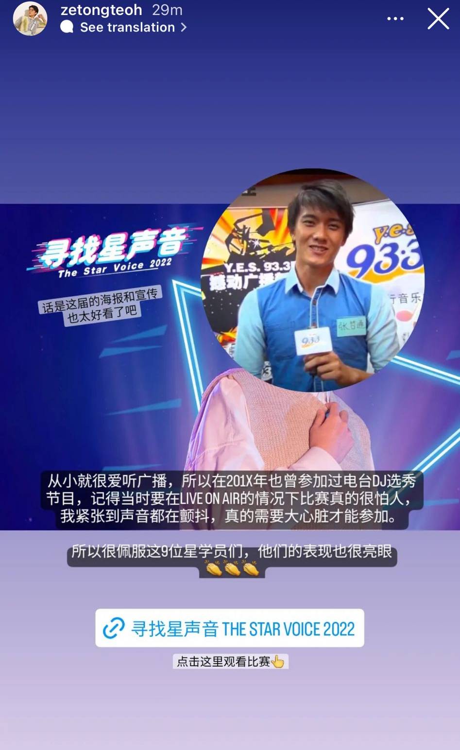 "Since young, I've always enjoyed listening to the radio and I was confident in my Chinese, so I thought to give it a try and experience something new,” Zetong said, adding that he was “probably 18 or 19” then.