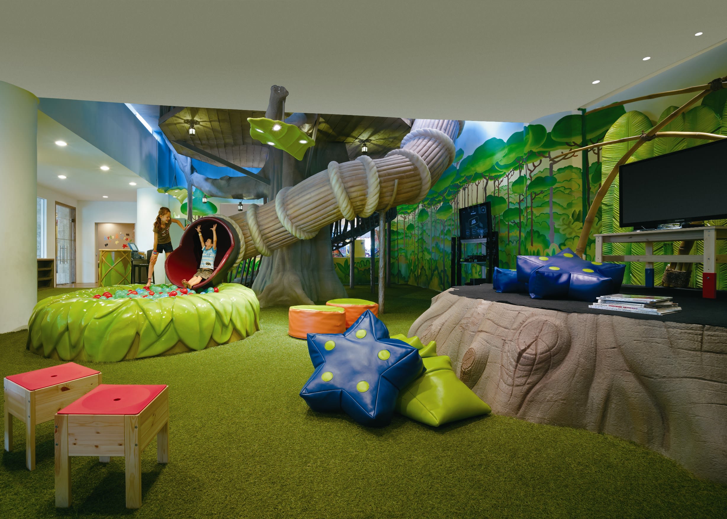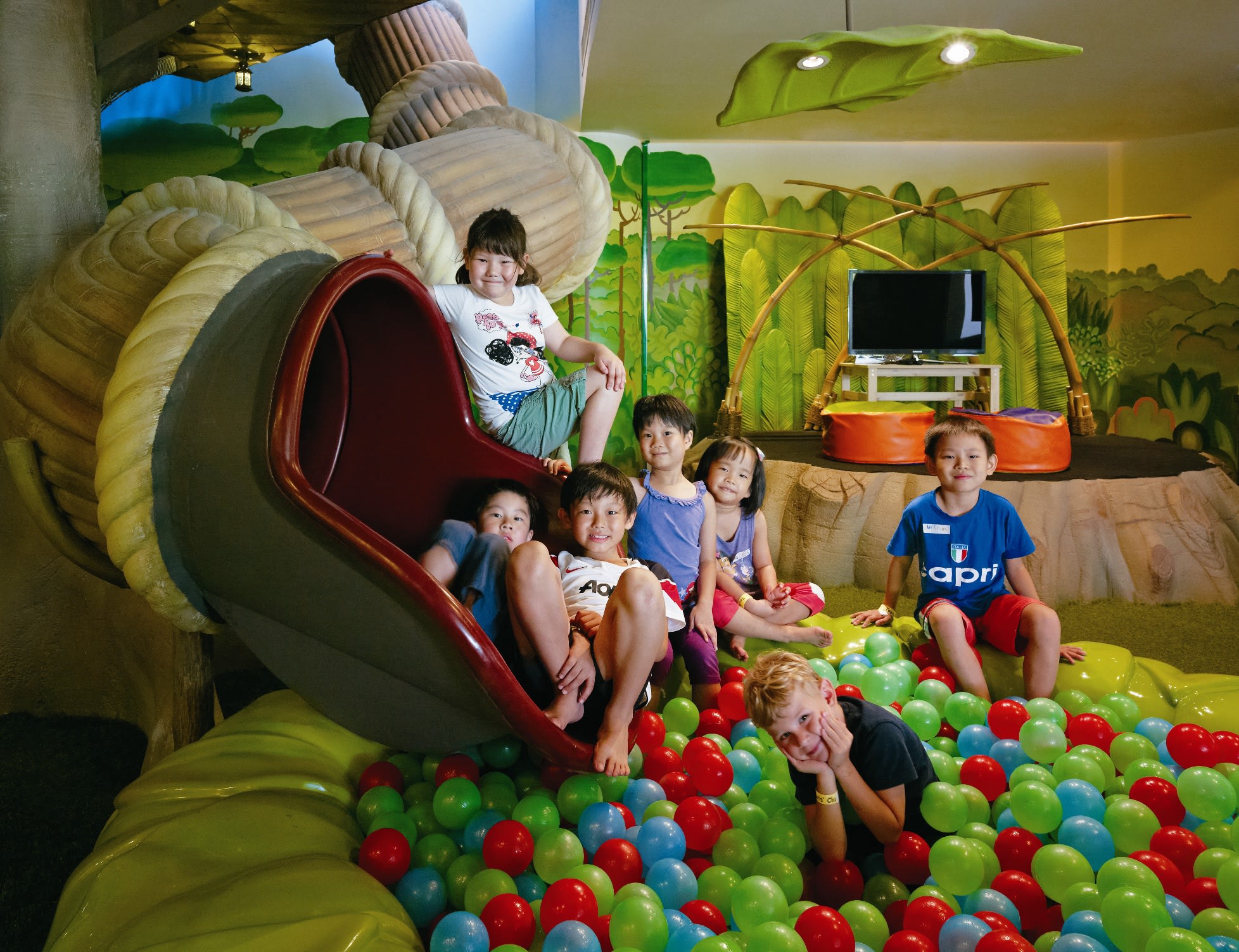 A staycation isn’t a fun-cation if you’re stuck with kids who are squabbling or demanding your attention 24/7, especially if you’re paying good money for a relaxing time. Of course, you want to do cool stuff with your spawn at some point, but what if for a few precious hours during your staycay, someone will take them off your hands and make sure they’re entertained and having a swell time, so you can have a swell time? This magic happens at the Toots Club at Shangri-La’s Rasa Sentosa Resort & Spa, where this giant treehouse slide is a main attraction.