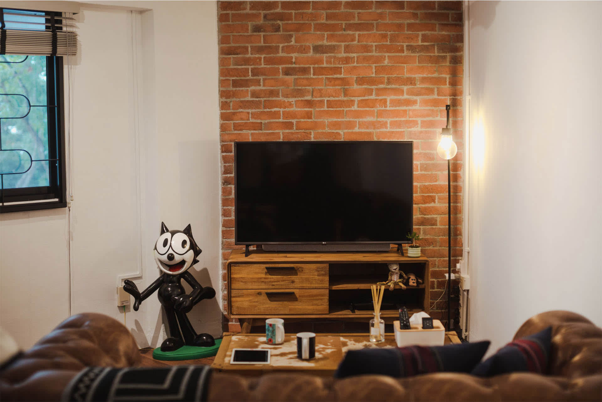 The flat has an odd-shaped floorplan, but instead of disguising it, Hui Min leaned into the unique layout and made it work for the owner.