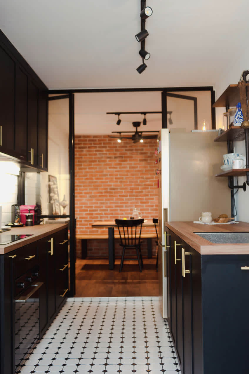 What was once a dark and dated flat has been given a complete facelift. This four-room resale flat in Ang Mo Kio, which was about 38 years old at the time of renovations, is now part-chic café, part-cool industrial New York loft, and 100 per cent charming and cosy.