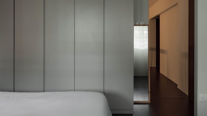 In the primary bedroom, a built-up partition and feature wall were hacked away as well to open up the space.