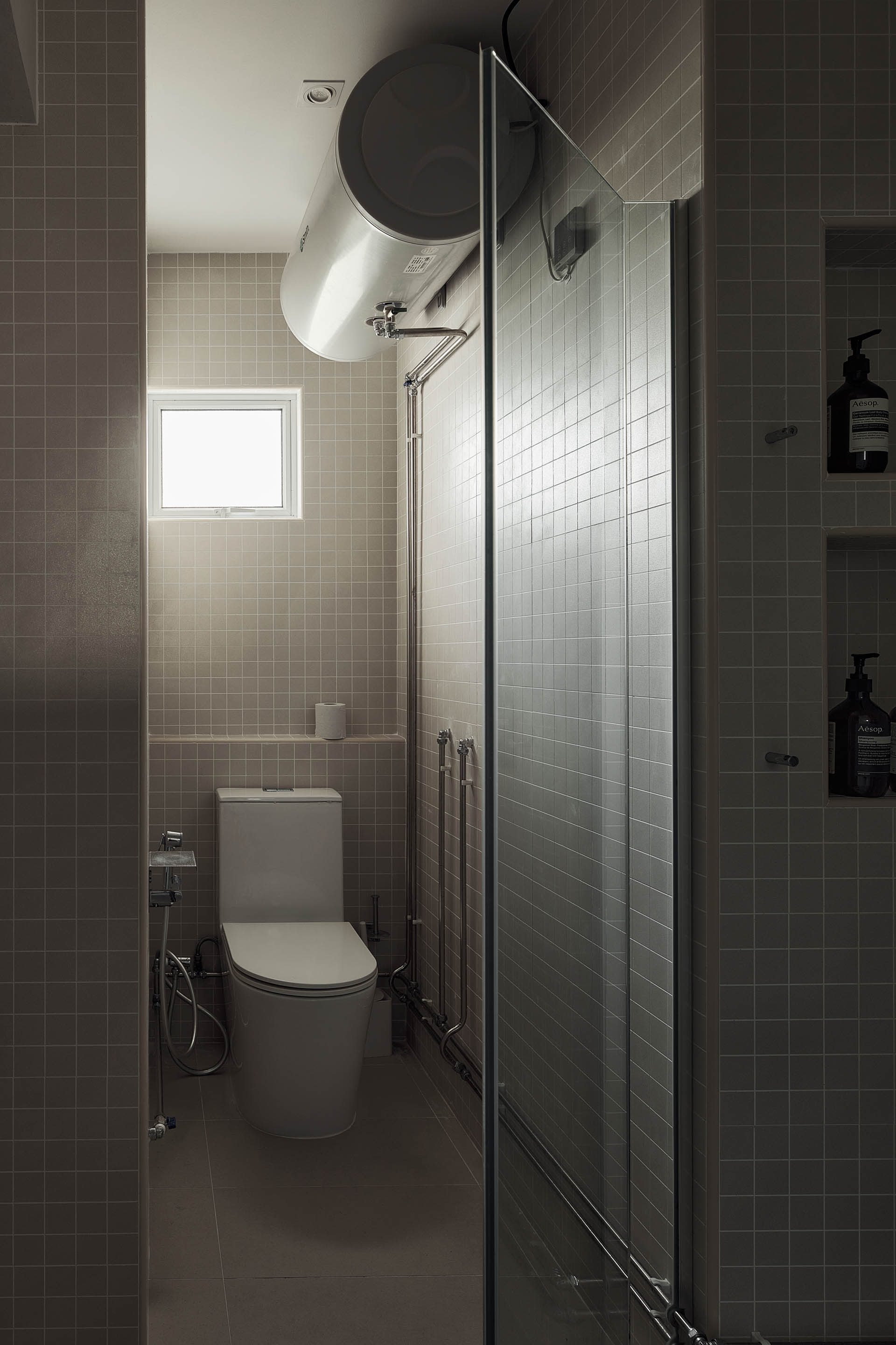Instead of hacking the bathroom tiles, new tiles were overlaid instead as the previous owners did renovation works less than seven years ago.