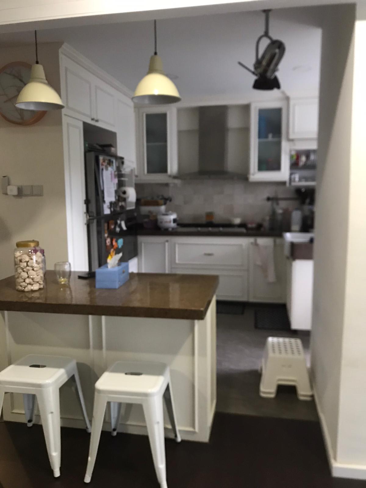 As such, a wall that was previously next to the fridge was hacked away, and an existing island was removed to maximise storage and usable prep space.