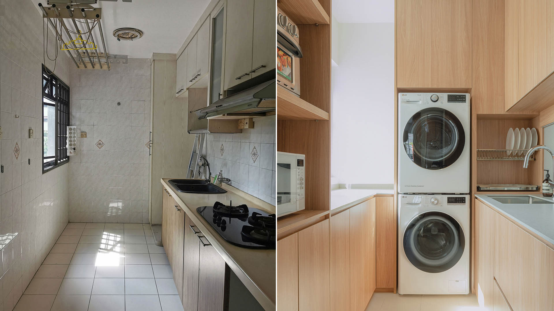 Renovations cost about $101,000 for the 800 sq ft space that the Singaporean couple would call home when they moved back to Singapore. Prior to this, the 22-year-old flat had a dreary, dated look — previous homeowners did minimal works to the space. Even the original wall and floor tiles provided by HDB were still intact.