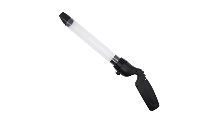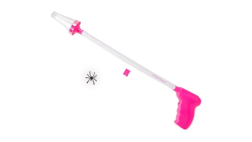 The Bug Arrest bug catcher has an extendable rod (up to 85cm), and the bug catching head rotates 180 degrees for better coverage. But the best part about this is that it uses a suction vacuum to capture critters, which are stored in a transparent container. Operates on three AA batteries.