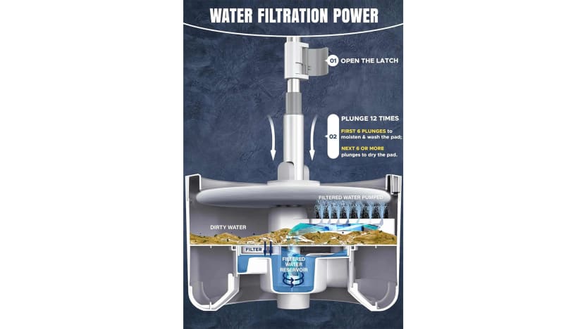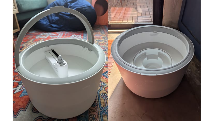 The bucket comes has an in-built dual-chamber water chamber that comes into action when you spin it. The system works by always spraying clean water onto the mop pad during spinning, while the built-in hard brush scrubs the mop pad clean. The two chambers also means that clean and dirty water are separated—and remain separated while you clean.