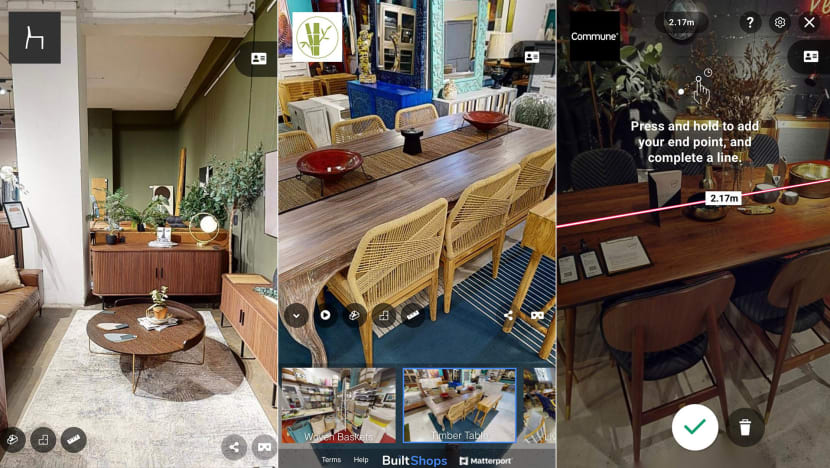 Measurements are largely accurate — a dining table from Commune measured 217cm on the virtual walkthrough, compared to the actual 220cm listed on Commune’s website.