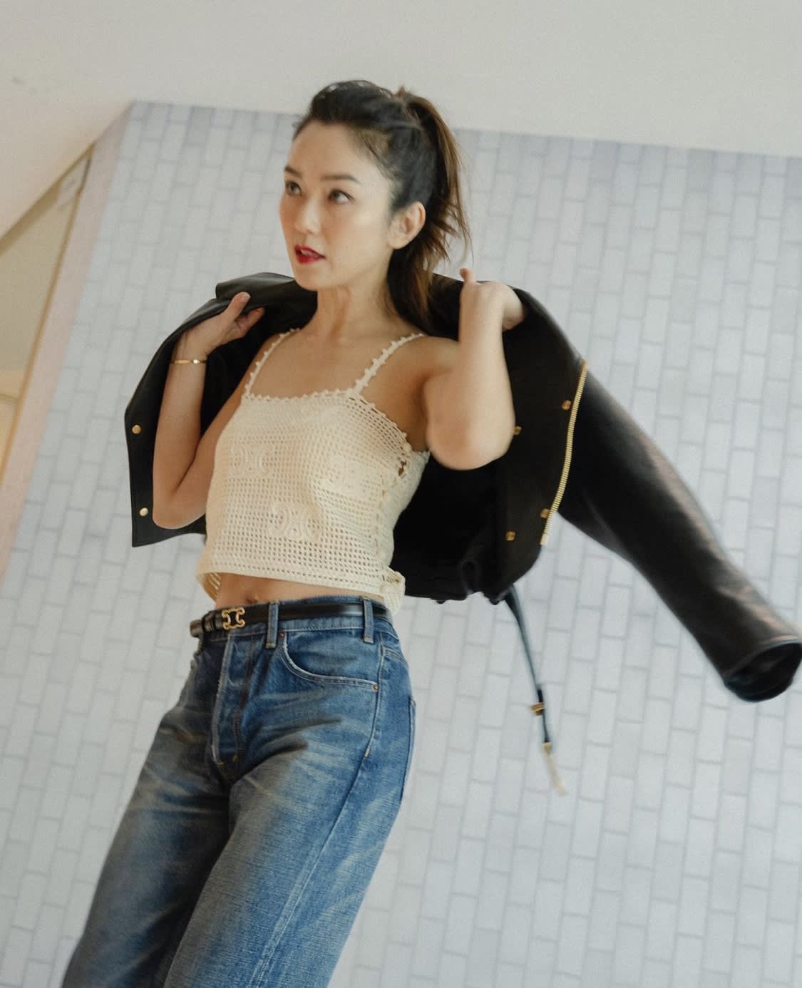From the Celine crochet top to the biker jacket and belt, we love everything about Joanne's OOTD. She even wore a red lip to make her look even more standout.