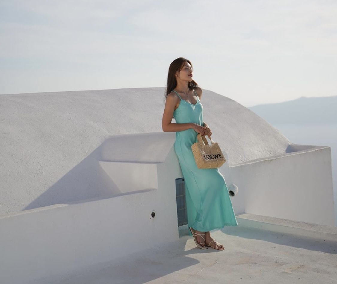 Also going bright and bold was Hazelle who looked equal parts sexy and chic in a turquoise number. Her look wouldn’t be complete without that cute raffia tote from Loewe.