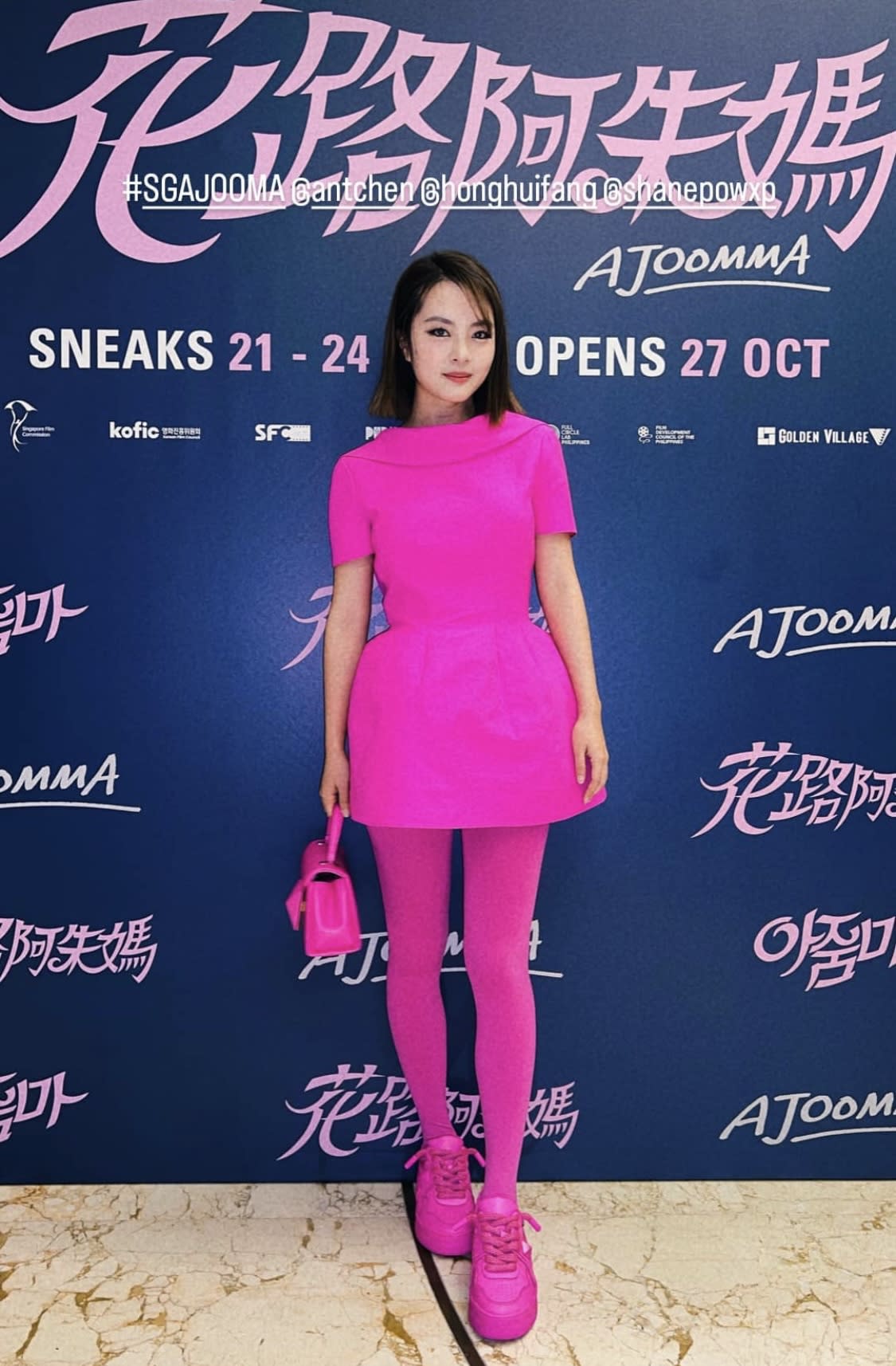 Is there such a thing as too much pink? Not for Chantalle. The actress was spotted at the Singapore gala premiere for Ajoomma in a look-at-me Valentino pink ensemble that’s equal parts flirty and sporty.