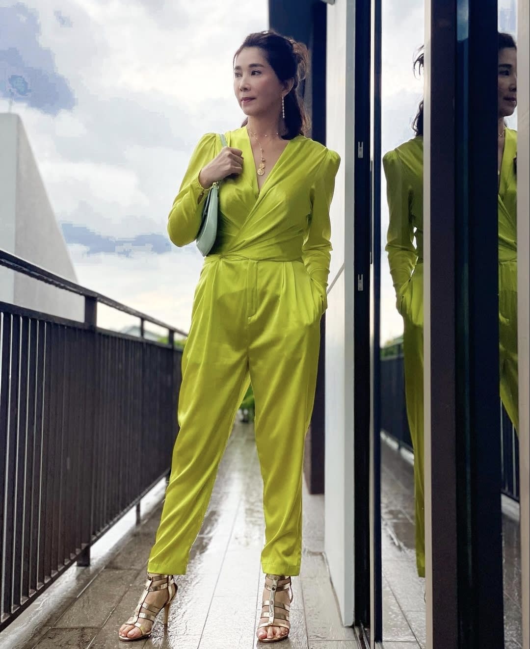From avocado to broccoli, Xiuhuan filled her Instagram caption with numerous emojis that matched with her neon green jumpsuit. Those shiny strappy heels injected an extra dose of party mood for her OOTD.