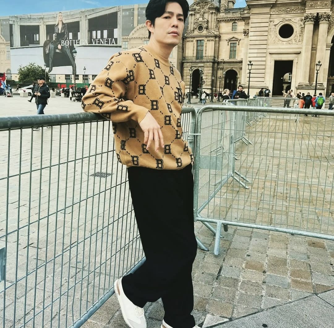 Yaodong, who’s holidaying in Paris, stood out from the crowd with his logo mania pullover from Korean lifestyle brand MLB.