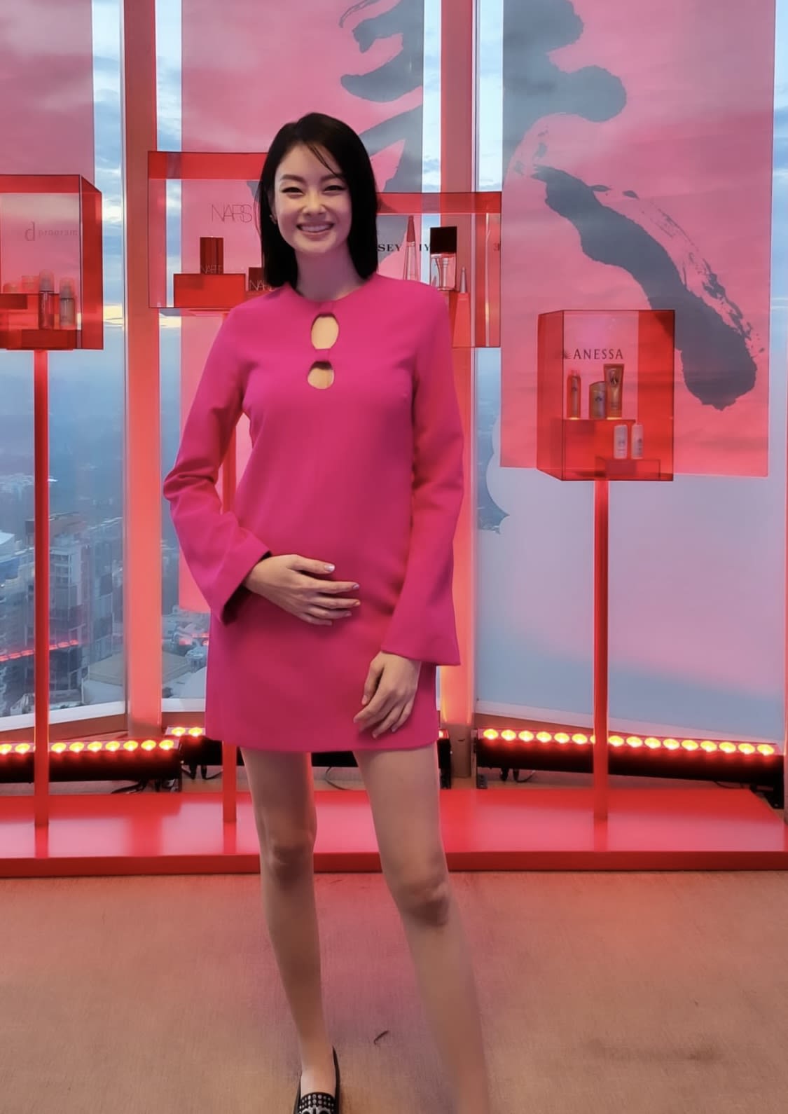 Could mint be Xiuhuan's favourite colour? The actress was spotted in not one but two green looks this week. We like how she contrasted the shorts suit with a pink purse.