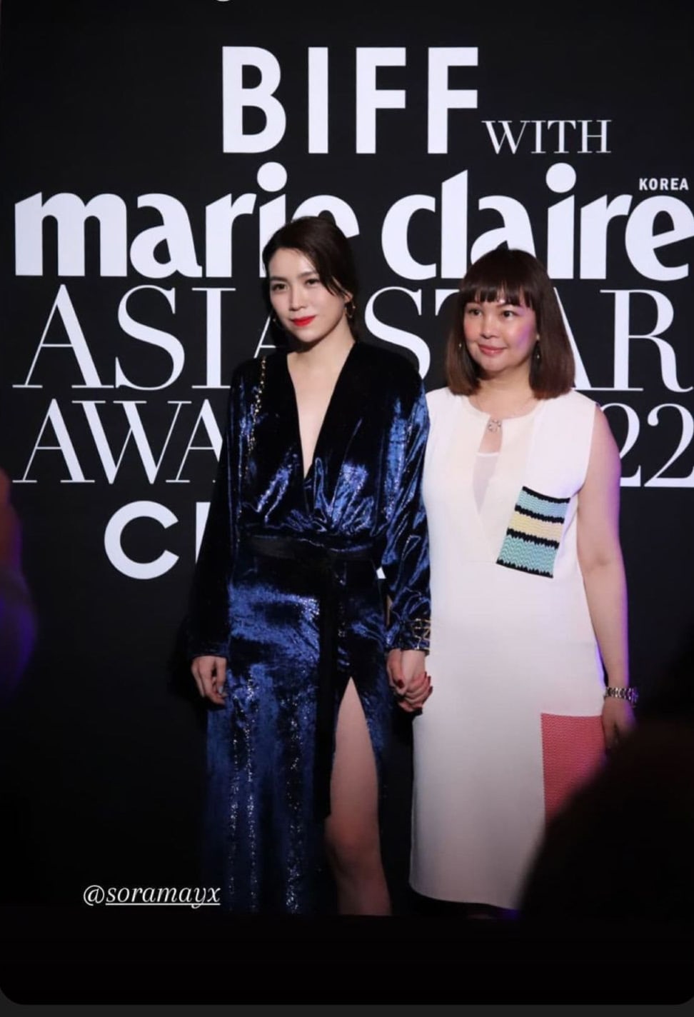 Huifang, styled by her daughter Tay Ying, was a picture of elegance in a black mermaid gown when she attended the premiere of her movie Ajoomma at the Busan International Film Festival. Our favourite piece has to be the embroidered cape jacket that looks sharp and stylish.