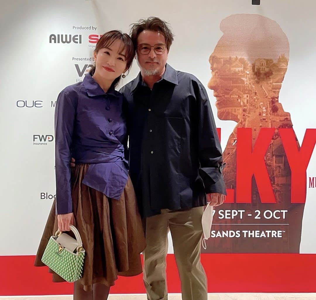 Fann, who was spotted at The LKY Musical with hubby Christopher Lee, was chio as always in a Tory Burch asymmetrical purple shirt and tiered skirt. She juxtaposed her business-meets-party look with a green geometric print Louis Vuitton handbag.