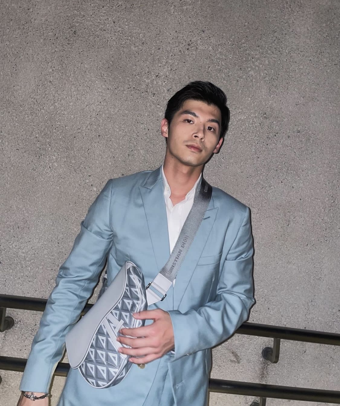 Streamers Go Live star Shawn cleaned up well in a stylish and sharp baby blue suit this week. He paired it with a Dior geometric print saddle bag for a fashion forward look.