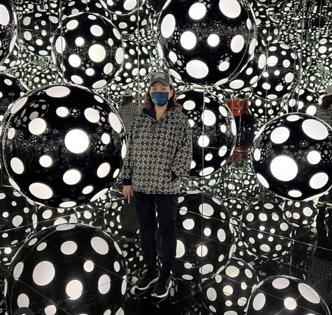 Kit shared pics from her visit to the Yayoi Kusama exhibition in Hong Kong (can you believe it's her first purely leisure trip to the city in more than 25 years?!) and the dizzying display wasn't the only thing that caught our eye. The singer's kaleidoscope-like print jacket looks equally captivating.