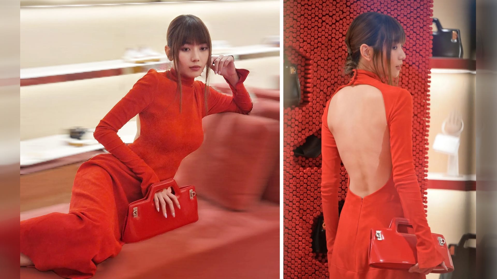 The Star Awards Most Popular Rising Star nominee showed off her fearless fashion spirit in a simple yet stunning suede scarlet number with a daring open back.