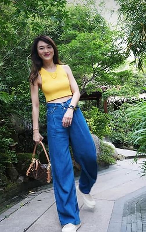 Accompanying her hubby to his hometown was Joanne, who kept it casual in a sunshiny yellow tank top and very roomy azure trousers as they dined at a fancy vegetarian restaurant. And yes, we certainly noticed the Louis Vuitton bag that added that luxe touch to her outfit.