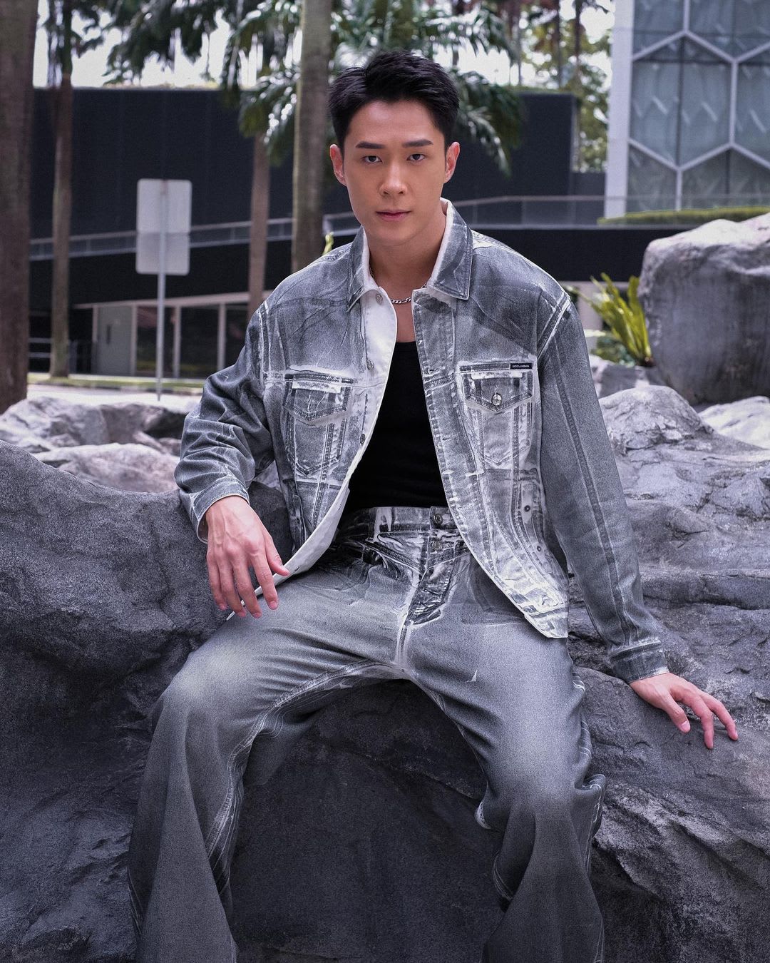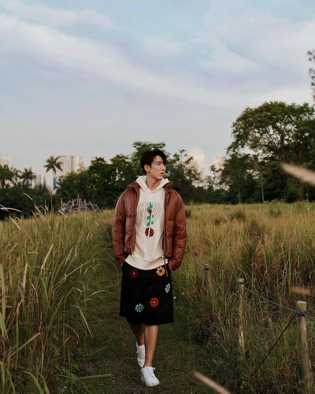 Gone are the days when cartoon flower patches were only for little girls — now, grown men are rocking them too. A couple of months after Christopher Lee wore something similar, it’s now Siming’s turn to slip into the Moncler Bermuda shorts, which he paired with a swaggy albeit not-very-Singapore-weather-friendly hoodie and puffer jacket. Anything in the name of fashion, right?