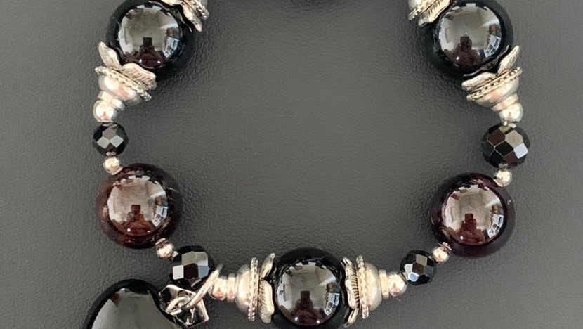 Dark coloured stones such as Black Tourmaline and Black Onyx, as seen in this bracelet, can help with anxiety and stress during difficult times. This piece is $409. There are simpler pieces in CCJ that start from $100.