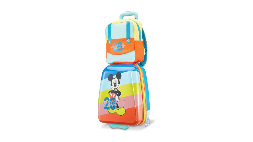 This collab between American Tourister and Disney consists of a backpack and carry-on luggage for the little one, both adorably coloured and designed with Mickey. The luggage has a split-case shell construction made of ABS while being fitted with a telescopic steel trolley handle and organisation pockets. The wheels aren’t multi-directional, however. The backpack, on the other hand, makes for a great school bag past the holiday season. American Tourister Disney Teddy Buddy Luggage with Spinners, $155.36. Buy here