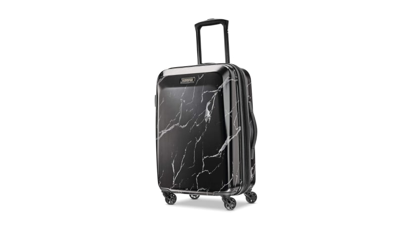 We love the black marble design on this American Tourister check-in luggage, made with PC and ABS, as it is stylish and sleek. The luggage opens into two halves with a mesh divider, cross straps and zipped modesty pocket. It can expand 1.5 inches too (more space for extra shopping!). The spinner wheels can move in multiple directions led by the retractable pull handle that locks in place with a push button. While known for being a workhorse, American Tourister offers a 10-year limited warranty on its luggage. American Tourister Moonlight Hardside Expandable Luggage Checked-Large 28-inch in Black Marble, $256.60. Buy here