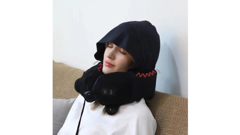 This is like your typical U-shaped neck pillow – on steroids. Aside from the hood, which is handy for blocking out light and keeping your head and ears warm (while also lending you an air of mystery), it also has heat and massage functions to help relax those tense muscles. If that wasn’t enough, it also boasts a special built-in pump for easy inflating and deflating to adjust the firmness of the pillow.