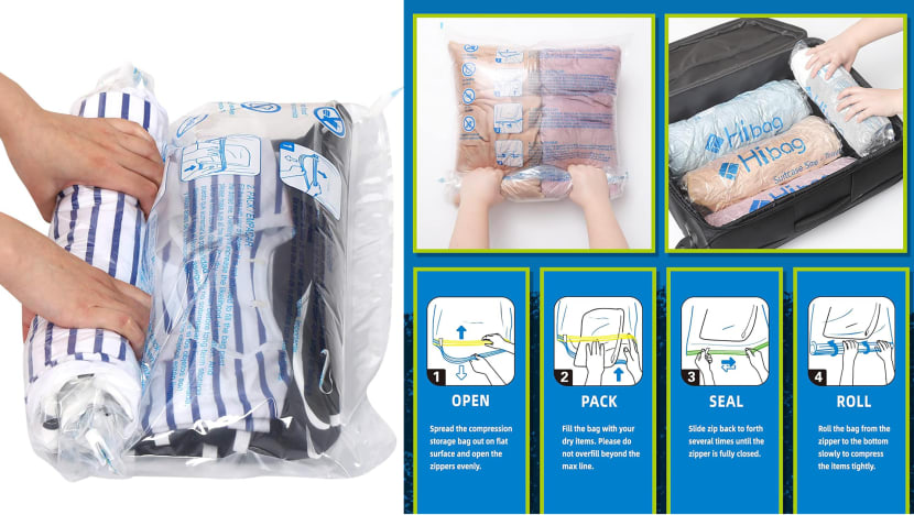 Somewhere in between a vacuum pack and packing cube are compression packing cubes. Unlike regular packing cubes, which simply compartmentalise items, compression packing cubes have an additional zipper or mechanism that allows you to compress the contents further, reducing the volume they take up.