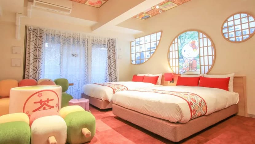 The Hello Kitty Maiko Room in Resi Stay Nishiki is actually housed in a traditional townhouse with Japanese style interiors that’ll make you feel like you’re living in old Kyoto. But don’t worry, it has all the modern fittings (bathrooms, air con, wifi, the whole works), all given the Hello Kitty treatment. You’ll find the famous feline in many nooks and crannies in the 42.5sqm room (which sleeps four pax), from the bed headboards and wall murals, to bathroom accessories and even the old-school sliding fusama doors. Similar to Resi Stay The Kyoto, guests who book this room will get Hello Kitty care packs and tote bags. Prices from 19,545 yen (S$212) per night. More info here.