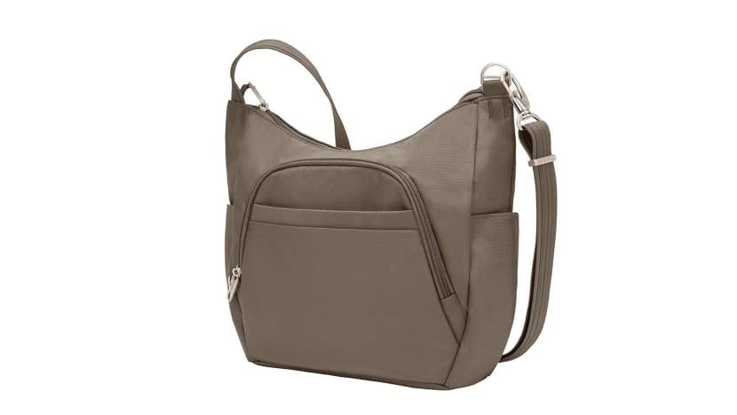 Need something roomier? This chic shoulder bag, also made from slash-resistant material, features plenty of compartments (some of which can be locked), RFID blocking pockets and even an adjustable strap that can be secured to a stationary object. It also comes with a longer strap so you can wear it as a crossbody bag. Travelon Parkview Anti-Theft Satchel Crossbody Bag, $91.58. Buy here