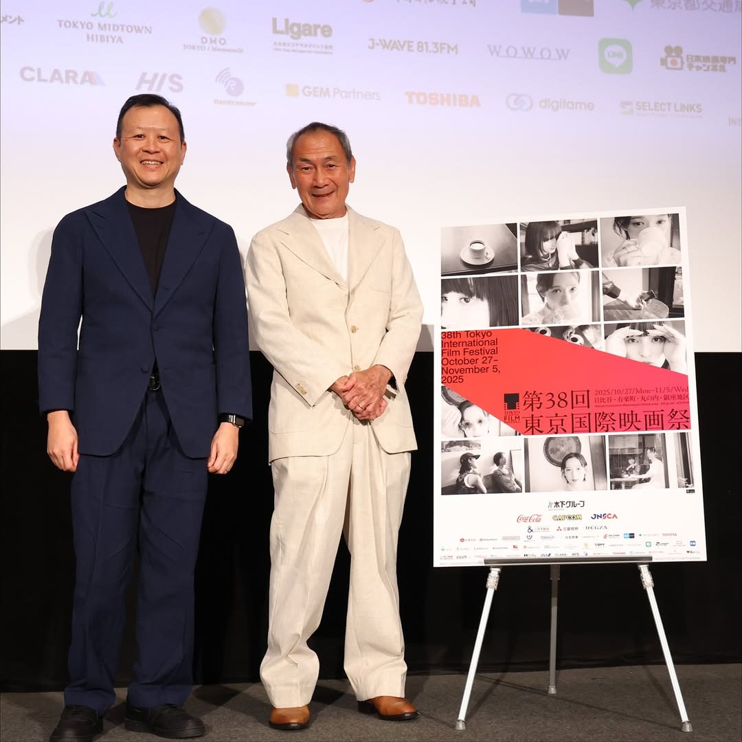 Writer/Director Michael Kam with Lim Kay Tong at Old Man and His Car's Tokyo International Film Festival screening on Nov 2.