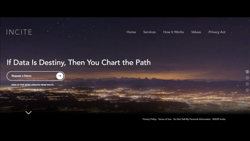 Welcome to the future: the homepage to the fictional tech company Incite Inc.