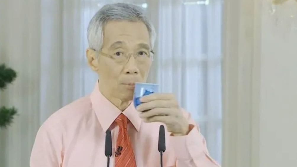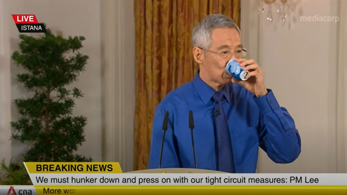 Alas, today’s address marked the dawn of a new era. PM Lee not only used a new cup, he continued speaking in English even after taking several sips.